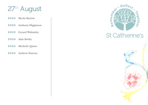 27 August th 2023 Sheila Barlow 2023 Anthony Higginson 2023 Gerard Walmsley 2024 Alan Beeby 2024 Michelle Quinn 2024 Andrew Hanson