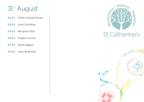 31 August st 2022 Hollie Amanda Dring 2022 Lynn Goulding 2022 Margaret Tully 2022 Stephen Vernal 2022 Mark Higgins 2024 Clara Brakewell