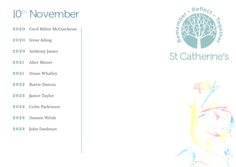 10 November th 2020 Cecil Milne McCutcheon 2020 Irene Ailing 2020 Anthony James 2021 Alice Moore 2021 Diane Whalley 2022 Barrie Dutton 2023 Janice Taylor 2023 Colin Parkinson 2023 Damon Welsh 2023 John Daulman