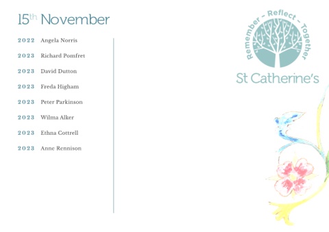 15 November th 2022 Angela Norris 2023 Richard Pomfret 2023 David Dutton 2023 Freda Higham 2023 Peter Parkinson 2023 Wilma Alker 2023 Ethna Cottrell 2023 Anne Rennison