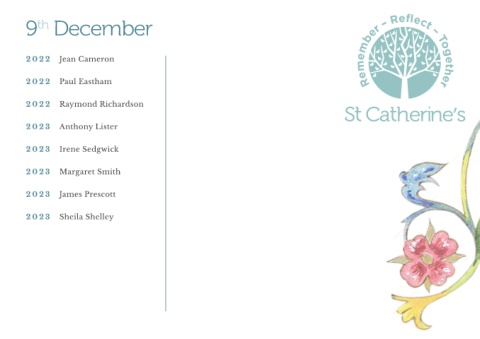 9 December th 2022 Jean Cameron 2022 Paul Eastham 2022 Raymond Richardson 2023 Anthony Lister 2023 Irene Sedgwick 2023 Margaret Smith 2023 James Prescott 2023 Sheila Shelley