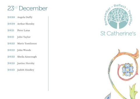 23 December rd 2020 Angela Duffy 2020 Arthur Hornby 2021 Peter Latus 2021 John Taylor 2022 Mavis Tomlinson 2022 John Woods 2022 Sheila Ainscough 2023 Justine Hornby 2023 Judith Hindley